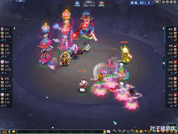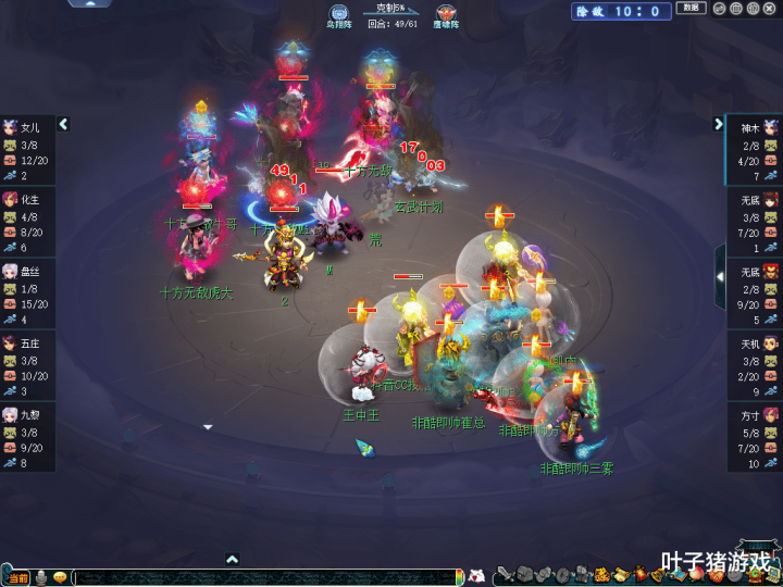 进入比赛后,【非酷即帅】靠着女儿村一速优势,很好的控制了比赛节奏。由于【十方无敌】的清宠能力弱于【非酷即帅】,便想着通过点杀神木林的方式确保召唤兽生存。比赛第13回合,【非酷即帅】不仅成功预判【十方无敌】的点杀目标,还反手点掉了九黎城,令其非常难受。